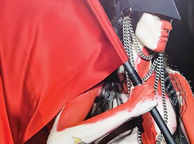 Originally from Portugal and both Central St Martins alumni, Marta and Paulo launched the brand in 2011 and quickly built up their fanbase, their signature navy or baby blue frayed pieces backlashing against the uniform pipe cleaner black denim. Since AW13, M·A·C Director of Makeup Artistry Terry Barber has helped them create the story of the girl they send down the catwalk – changing his own perception of beauty, as well as theirs.