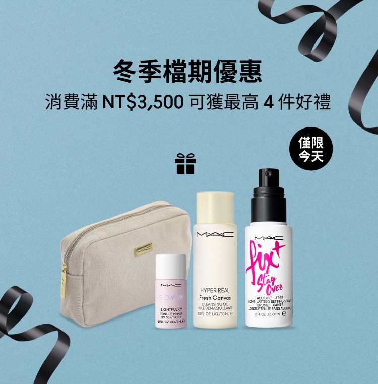 我的彩妝,首選 M·A·CPowder Kiss新品Powder Kiss系列全新作品Hazy Matte Lipstick, 與Lip + Cheek Mousse唇頰兩用慕斯, 從雙唇到雙頰,打造完美朦霧柔焦妝感。 選購POWDER KISS系列 鮮明or柔焦,由你定義探索你的專屬霧面妝感 NEW Powder Kiss Hazy Matte Lipstick Taken NEW Powder Kiss Lip + Cheek Mousse Buring Love M·A·CXIMAL SILKY MATTE LIPSTICK 669 WARM TEDDY 暖萌泰迪 我的首選M·A·C唇膏由專業彩妝師精心打造的完美配色組合,匯集熱銷色號與多元質地,呈現專屬你的標誌性唇妝。 立即選購唇部組合 4 款超值組合 75折優惠 星選雙件組 75 折購買任 2 件即享優惠,請將兩件商品加入購物車即可自動套用折扣. 兩件只要 $::2400:: 亮澤底妝雙件組 75 折購買任 2 件即享優惠,請將兩件商品加入購物車即可自動套用折扣. 兩件只要 NT$::2962:: 唇彩衣櫥組 75 折購買任 2 件即享優惠,請將兩件商品加入購物車即可自動套用折扣. 兩件只要 NT$::1575:: 終極臉部雙星組75折購買任 2 件即享優惠,請將兩件商品加入購物車即可自動套用折扣. 兩件只要 NT$::2640:: 熱賣商品精選節慶系列 65折優惠 65折 未來樂園系列-FIX+ 超持妝定妝噴霧組 65折 未來樂園系列-刷具組 65折 未來樂園系列-水潤嘟唇組 GLOW PLAY LIP BALM-WN 457 FAVOURITE 荔枝果凍 6 折優惠 Glow Play Cushiony Blush SO NATURAL 杏仁烤茶奶凍#裸粉色 6 折優惠 Studio Fix Pro Set + Blur Weightless Loose Powder Lavender 絕絕紫加購底妝神隊友,輕鬆湊單享價值好禮 GLOW PLAY LIGHTFUL C3 TONE-UP PRIMER SPF 50+/PA+++ 薰衣草 6 折優惠! Hyper Real Serumizer™ Eye Prep + Prime Highlighter 提高光澤, 清透遮蓋, 持久 Radiant Rose 5/5 ( 11 ) Prep + Prime Lip 保濕, 唇紋隱形, 嫩唇配方,唇部妝效升級! Skinfinish Metallic Cream Blush Priceless Purple 新會員首次購物尊享全單85折 |優惠碼: WEL15 MY M·A·C 帳戶 新客LINE會員下單禮 超漾光高防曬妝前乳 5ML 原價 $300 綁定官方LINE帳號拿優惠碼 > *每個帳戶限使用一次 立即購買 舊客回購禮 超漾光高防曬妝 前乳 5ml 原價 $300 登入輸入 MACPRO *每個帳戶限使用一次 立即購買] 全站免運費不限金額消費即可享受免費配送服務 了解更多*活動條款與注意事項*包含短效期商品(剩餘效期12個月),請確認需求後再購買* 活動期間與適用商品:優惠僅限指定商品,部分商品或新品/節日系列不適用。* 贈品說明:贈品數量有限,送完為止;贈品或試用品可能會不預告變更。* 取消/退款規則:整筆訂單取消或退款需退回所有贈品;部分取消或退款若金額低於門檻,也需退回對應贈品。* 折扣限制:促銷碼不可與其他優惠或活動併用。* 使用限制:每位顧客每訂單僅可使用一次,已完成或未完成訂單不適用。* 活動變更權:MAC 保留因未經授權使用、訂單異常、系統錯誤或其他不可預期情況修改、取消或終止活動的權利。*「買2享8折」優惠活動的權益,僅適用於以下指定商品:超持妝霧絲絨氣墊粉餅SPF 50/PA+++、超水感持色水唇膏、MACXIMAL極自我緞光唇膏 、MACXIMAL極自我柔霧唇膏、超持妝輕透濾鏡蜜粉、口袋雙色濾鏡蜜粉餅#紫白餅 、絲柔粉霧唇膏、超持妝奢緞粉底精華 | 聚光粉底、超持妝濾鏡粉底液SPF25/PA++ 、超持妝全能氣墊粉餅SPF 50/PA++++、絲柔粉霧奢緞唇膏、絲柔粉霧唇釉、超鎖吻霧感唇膏。此優惠不可與迎新禮遇、挖寶市集、全站9折等折扣類優惠活動同時使用。