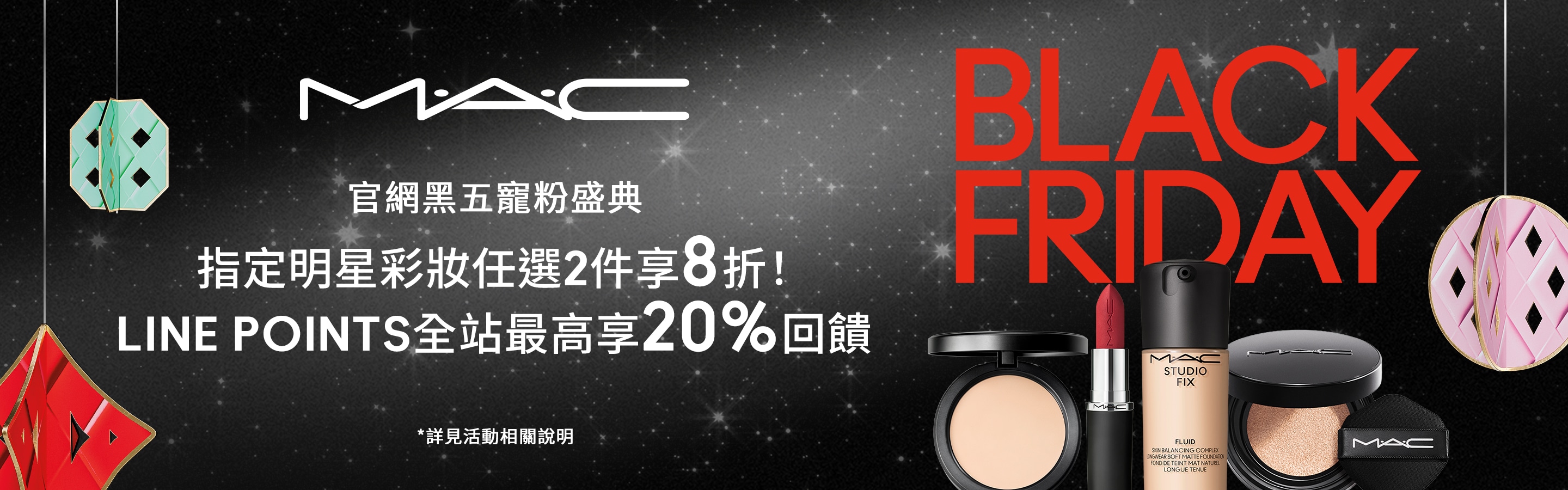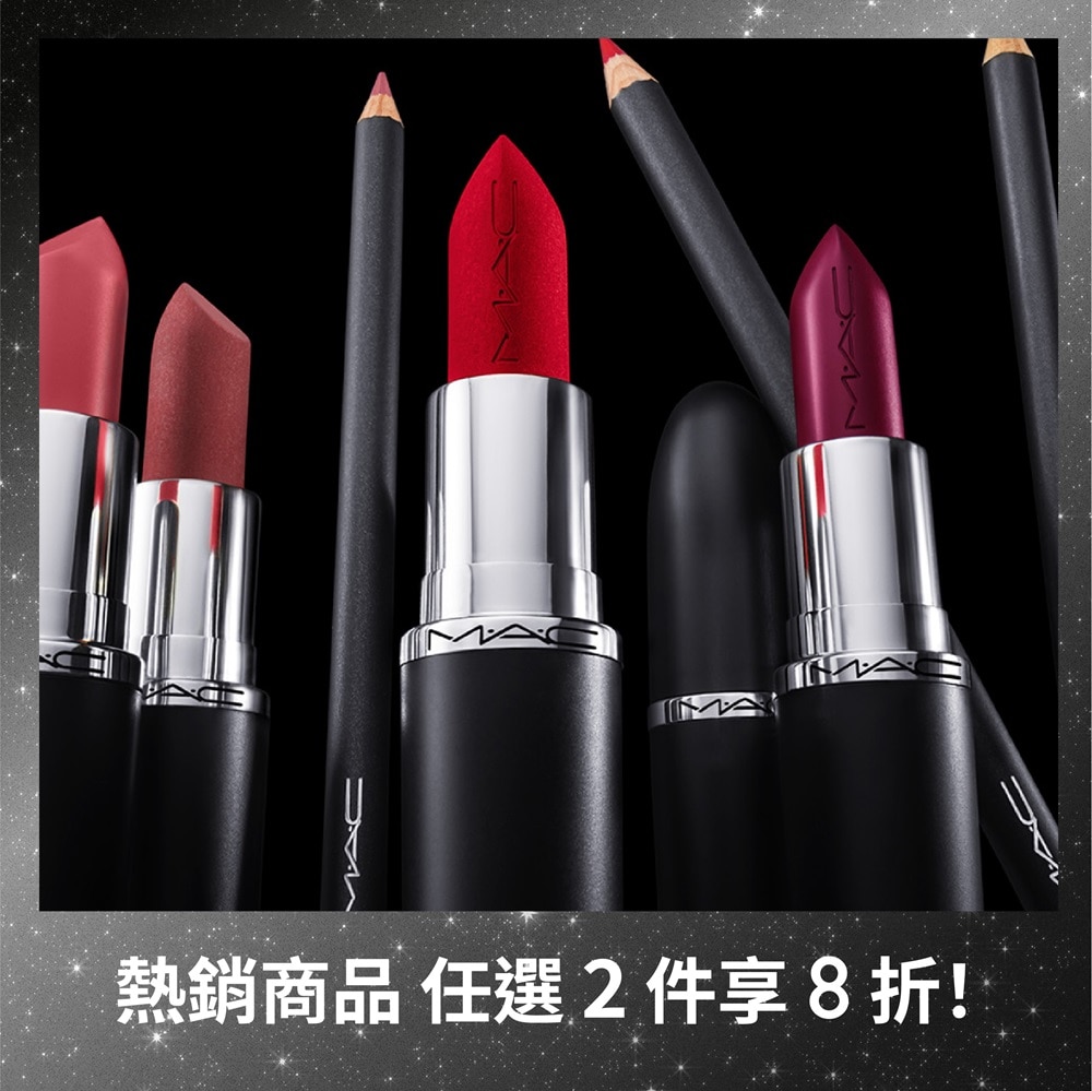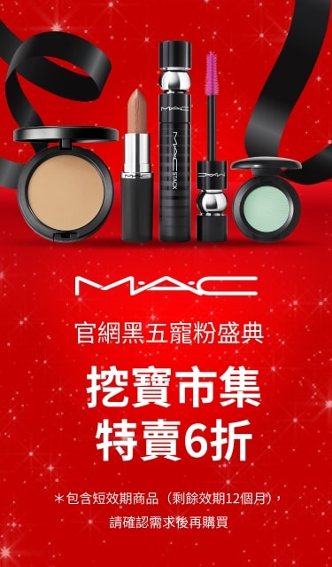 黑色星期五超級特賣 即將結束! Sun Nov 30 2025 23:59:59 很抱歉,活動已結束! 0 D 0 H 0 M 0 S 唇部底妝人氣王|任選二件8折 MACXIMAL SLEEK SATIN LIPSTICK 814 MYTH 光裸嫩 5/5 ( 8 ) M·A·CXIMAL SILKY MATTE LIPSTICK 669 WARM TEDDY 暖萌泰迪 Studio Fix Pro Set + Blur Weightless Loose Powder Lavender 絕絕紫 Chromacrayon Eye Shadow Stick High Taupes M·A·C Pro Brow Definer 1MM Tip Brow Pencil ONYX 6 折優惠! Eye Brows Styler 塑造12小時持久的極致立體眉形 Lingering(熱賣色) 加購底妝神隊友,輕鬆湊單享價值好禮 GLOW PLAY LIGHTFUL C3 TONE-UP PRIMER SPF 50+/PA+++ 薰衣草 6 折優惠! Hyper Real Serumizer™ Eye Prep + Prime Highlighter 提高光澤, 清透遮蓋, 持久 Bright Forecast 5/5 ( 11 ) Prep + Prime Lip 保濕, 唇紋隱形, 嫩唇配方,唇部妝效升級! Skinfinish Metallic Cream Blush Priceless Purple 選購最熱門的節日好禮*不適用全館9折優惠及迎新禮遇折扣 全新.節慶限定版 未來樂園系列-超透亮潤唇組 全新.節慶限定版 未來樂園系列-六色眼影盤 全新.節慶限定版 未來樂園系列-超漾光唇頰組 Pink 新會員首次購物尊享全單85折 |優惠碼: WEL15 MY M·A·C 帳戶 新客LINE會員下單禮 超漾光高防曬妝前乳 5ML 原價 $300 綁定官方LINE帳號拿優惠碼 > *每個帳戶限使用一次 立即購買 舊客回購禮 超漾光高防曬妝 前乳 5ml 原價 $300 登入輸入 MACPRO *每個帳戶限使用一次 立即購買] 全站免運費不限金額消費即可享受免費配送服務 了解更多*活動條款與注意事項* 活動期間與適用商品:優惠僅限指定商品,部分商品或新品/節日系列不適用。* 贈品說明:贈品數量有限,送完為止;贈品或試用品可能會不預告變更。* 取消/退款規則:整筆訂單取消或退款需退回所有贈品;部分取消或退款若金額低於門檻,也需退回對應贈品。* 折扣限制:促銷碼不可與其他優惠或活動併用。* 使用限制:每位顧客每訂單僅可使用一次,已完成或未完成訂單不適用。* 活動變更權:MAC 保留因未經授權使用、訂單異常、系統錯誤或其他不可預期情況修改、取消或終止活動的權利。*「買2享8折」優惠活動的權益,僅適用於以下指定商品:超持妝霧絲絨氣墊粉餅SPF 50/PA+++、超水感持色水唇膏、MACXIMAL極自我緞光唇膏 、MACXIMAL極自我柔霧唇膏、超持妝輕透濾鏡蜜粉、口袋雙色濾鏡蜜粉餅#紫白餅 、絲柔粉霧唇膏、超持妝奢緞粉底精華 | 聚光粉底、超持妝濾鏡粉底液SPF25/PA++ 、超持妝全能氣墊粉餅SPF 50/PA++++、絲柔粉霧奢緞唇膏、絲柔粉霧唇釉、超鎖吻霧感唇膏。此優惠不可與迎新禮遇、挖寶市集、全站9折等折扣類優惠活動同時使用。