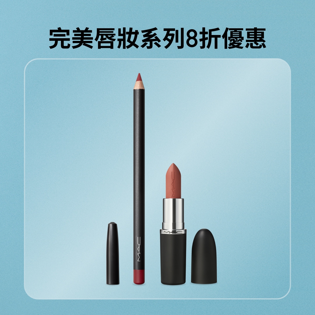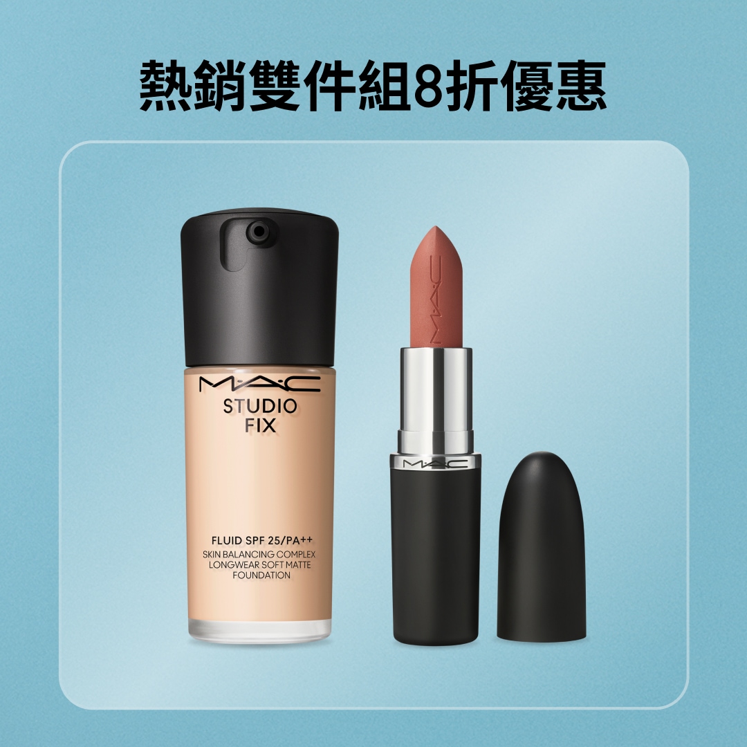 我的彩妝,首選 M·A·CPowder Kiss新品Powder Kiss系列全新作品Hazy Matte Lipstick, 與Lip + Cheek Mousse唇頰兩用慕斯, 從雙唇到雙頰,打造完美朦霧柔焦妝感。 選購POWDER KISS系列 鮮明or柔焦,由你定義探索你的專屬霧面妝感 NEW Powder Kiss Hazy Matte Lipstick Taken NEW Powder Kiss Lip + Cheek Mousse Buring Love M·A·CXIMAL SILKY MATTE LIPSTICK 669 WARM TEDDY 暖萌泰迪 我的首選M·A·C唇膏由專業彩妝師精心打造的完美配色組合,匯集熱銷色號與多元質地,呈現專屬你的標誌性唇妝。 立即選購唇部組合 4 款超值組合 8折優惠 熱銷雙件組 8 折優惠購買任 2 件即享優惠,請將兩件商品加入購物車即可自動套用折扣. 兩件只要 $::2400:: 亮澤底妝雙件組 8 折購買任 2 件即享優惠,請將兩件商品加入購物車即可自動套用折扣. 兩件只要 NT$::2962:: 完美唇妝系列 8折優惠購買任 2 件即享優惠,請將兩件商品加入購物車即可自動套用折扣. 兩件只要 NT$::1575:: 終極臉部雙星組8折購買任 2 件即享優惠,請將兩件商品加入購物車即可自動套用折扣. 兩件只要 NT$::2640:: 熱賣商品精選節慶系列 65折優惠 65折 未來樂園系列-FIX+ 超持妝定妝噴霧組 65折 未來樂園系列-刷具組 65折 未來樂園系列-水潤嘟唇組 GLOW PLAY LIP BALM-WN 457 FAVOURITE 荔枝果凍 6 折優惠 Glow Play Cushiony Blush SO NATURAL 杏仁烤茶奶凍#裸粉色 6 折優惠 Studio Fix Pro Set + Blur Weightless Loose Powder Lavender 絕絕紫加購底妝神隊友,輕鬆湊單享價值好禮 GLOW PLAY LIGHTFUL C3 TONE-UP PRIMER SPF 50+/PA+++ 薰衣草 6 折優惠! Hyper Real Serumizer™ Eye Prep + Prime Highlighter 提高光澤, 清透遮蓋, 持久 Radiant Rose 5/5 ( 11 ) Prep + Prime Lip 保濕, 唇紋隱形, 嫩唇配方,唇部妝效升級! Skinfinish Metallic Cream Blush Priceless Purple 新會員首次購物尊享全單85折 |優惠碼: WEL15 MY M·A·C 帳戶 新客LINE會員下單禮 超漾光高防曬妝前乳 5ML 原價 $300 綁定官方LINE帳號拿優惠碼 > *每個帳戶限使用一次 立即購買 舊客回購禮 超漾光高防曬妝 前乳 5ml 原價 $300 登入輸入 MACPRO *每個帳戶限使用一次 立即購買] 全站免運費不限金額消費即可享受免費配送服務 了解更多*活動條款與注意事項*包含短效期商品(剩餘效期12個月),請確認需求後再購買* 活動期間與適用商品:優惠僅限指定商品,部分商品或新品/節日系列不適用。* 贈品說明:贈品數量有限,送完為止;贈品或試用品可能會不預告變更。* 取消/退款規則:整筆訂單取消或退款需退回所有贈品;部分取消或退款若金額低於門檻,也需退回對應贈品。* 折扣限制:促銷碼不可與其他優惠或活動併用。* 使用限制:每位顧客每訂單僅可使用一次,已完成或未完成訂單不適用。* 活動變更權:MAC 保留因未經授權使用、訂單異常、系統錯誤或其他不可預期情況修改、取消或終止活動的權利。*「買2享8折」優惠活動的權益,僅適用於以下指定商品:超持妝霧絲絨氣墊粉餅SPF 50/PA+++、超水感持色水唇膏、MACXIMAL極自我緞光唇膏 、MACXIMAL極自我柔霧唇膏、超持妝輕透濾鏡蜜粉、口袋雙色濾鏡蜜粉餅#紫白餅 、絲柔粉霧唇膏、超持妝奢緞粉底精華 | 聚光粉底、超持妝濾鏡粉底液SPF25/PA++ 、超持妝全能氣墊粉餅SPF 50/PA++++、絲柔粉霧奢緞唇膏、絲柔粉霧唇釉、超鎖吻霧感唇膏。此優惠不可與迎新禮遇、挖寶市集、全站9折等折扣類優惠活動同時使用。